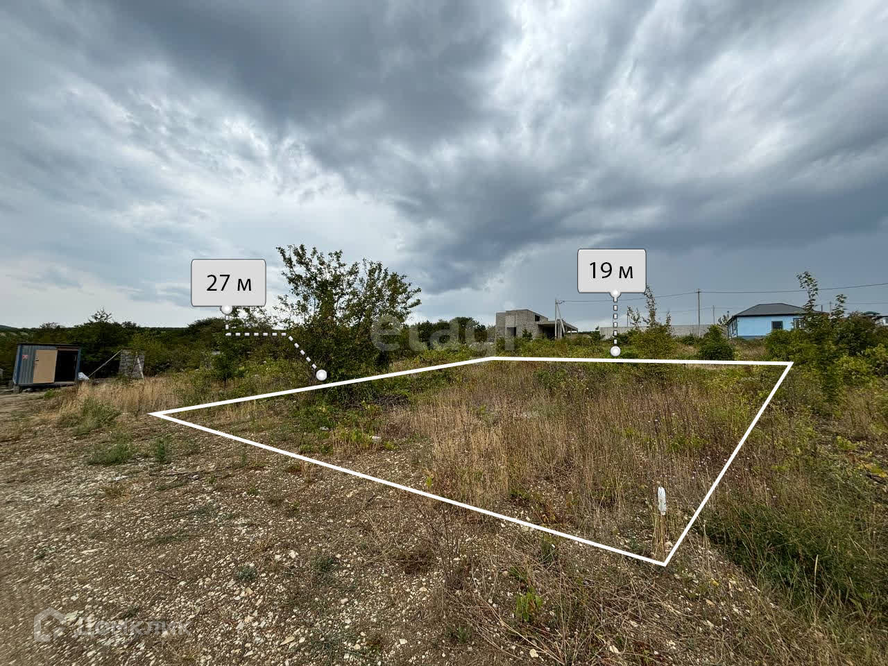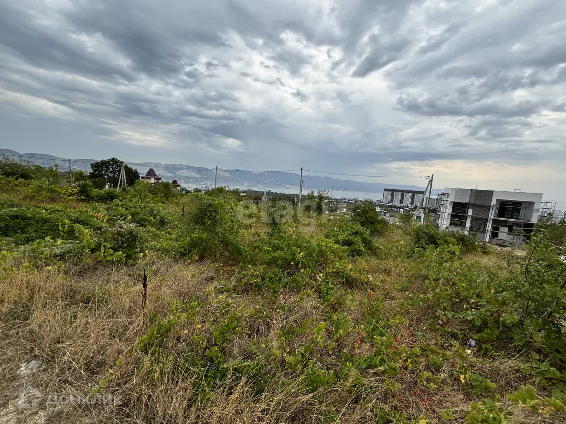 Участок имеет уклон 1,5 метра по длинной стороне, располагается на возвышенности, благодаря чему у вас будет великолепный панорамный вид на город, море и горы, даже когда построятся соседние дома.