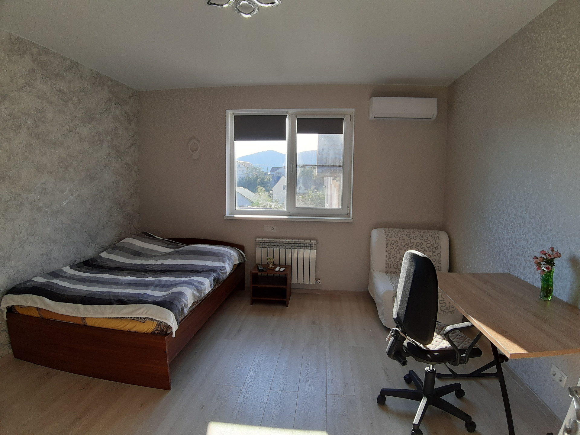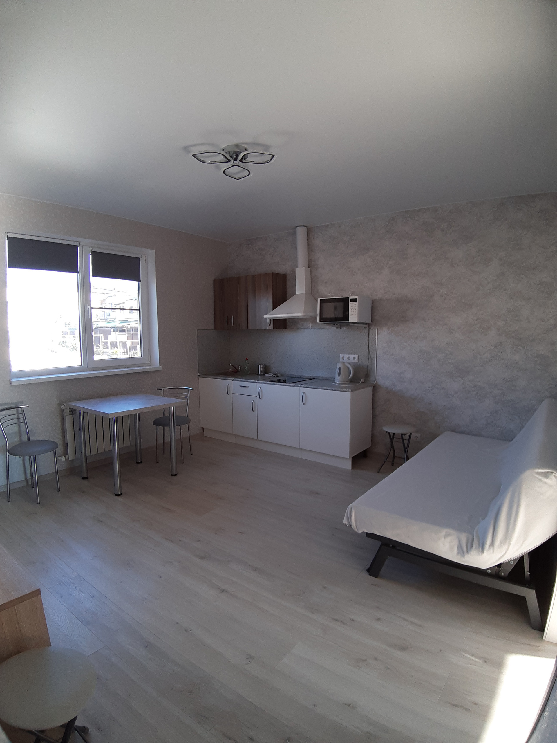 Двухкомнатная квартира-студия находиться в экологически чистом районе города – элитном посёлке Мысхако. Рядом находятся: остановка маршрутки, магазины, супермаркеты, морской пляж. Квартира с новым ремонтом, уютная и чистая. Для комфортного проживания имеется: 2-х спальная кровать, диван раскладной, кресло, шкаф-купе, рабочий стол, телевизор, интернет, кондиционер, холодильник, микроволновая печь, набор кухонных принадлежностей, стиральная машина, гладильная доска, утюг, постельное белье. Уютный двор для отдыха.