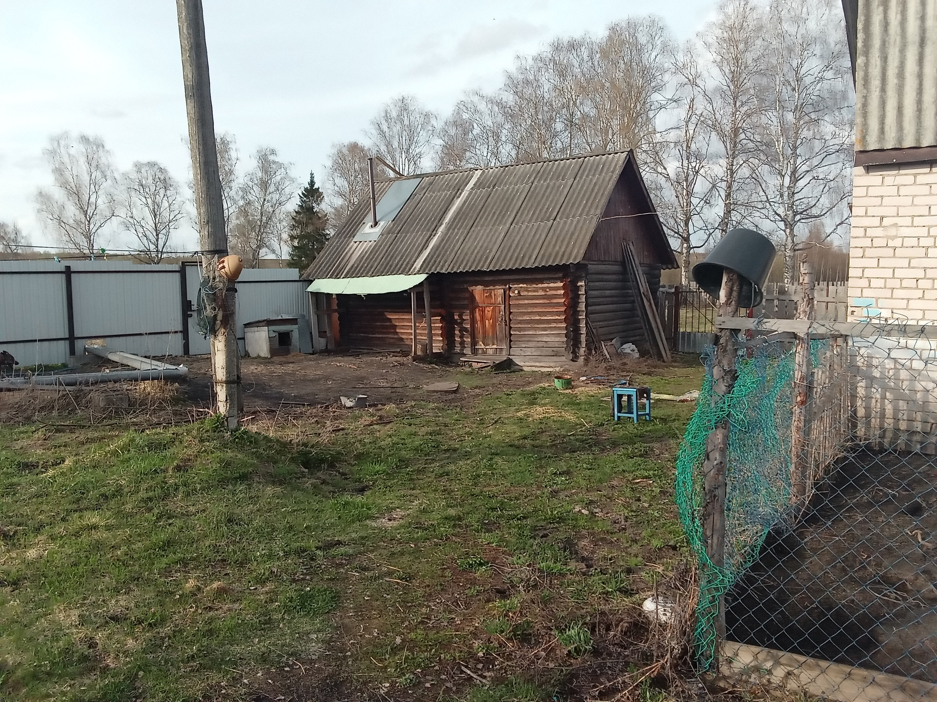Гараж, бревенчатая баня(металлическая печь).
