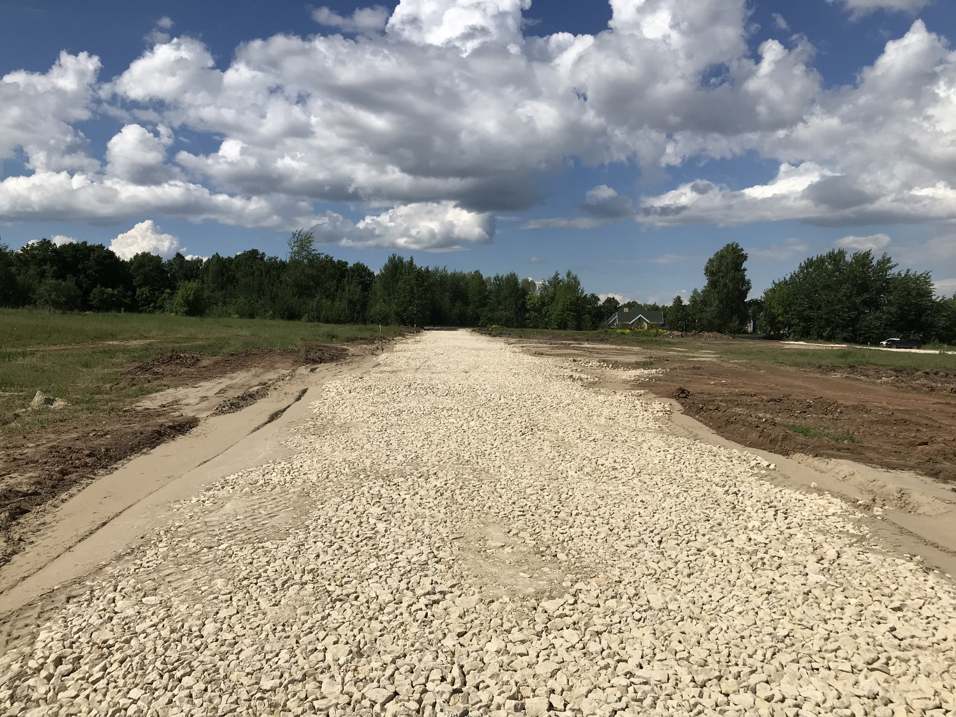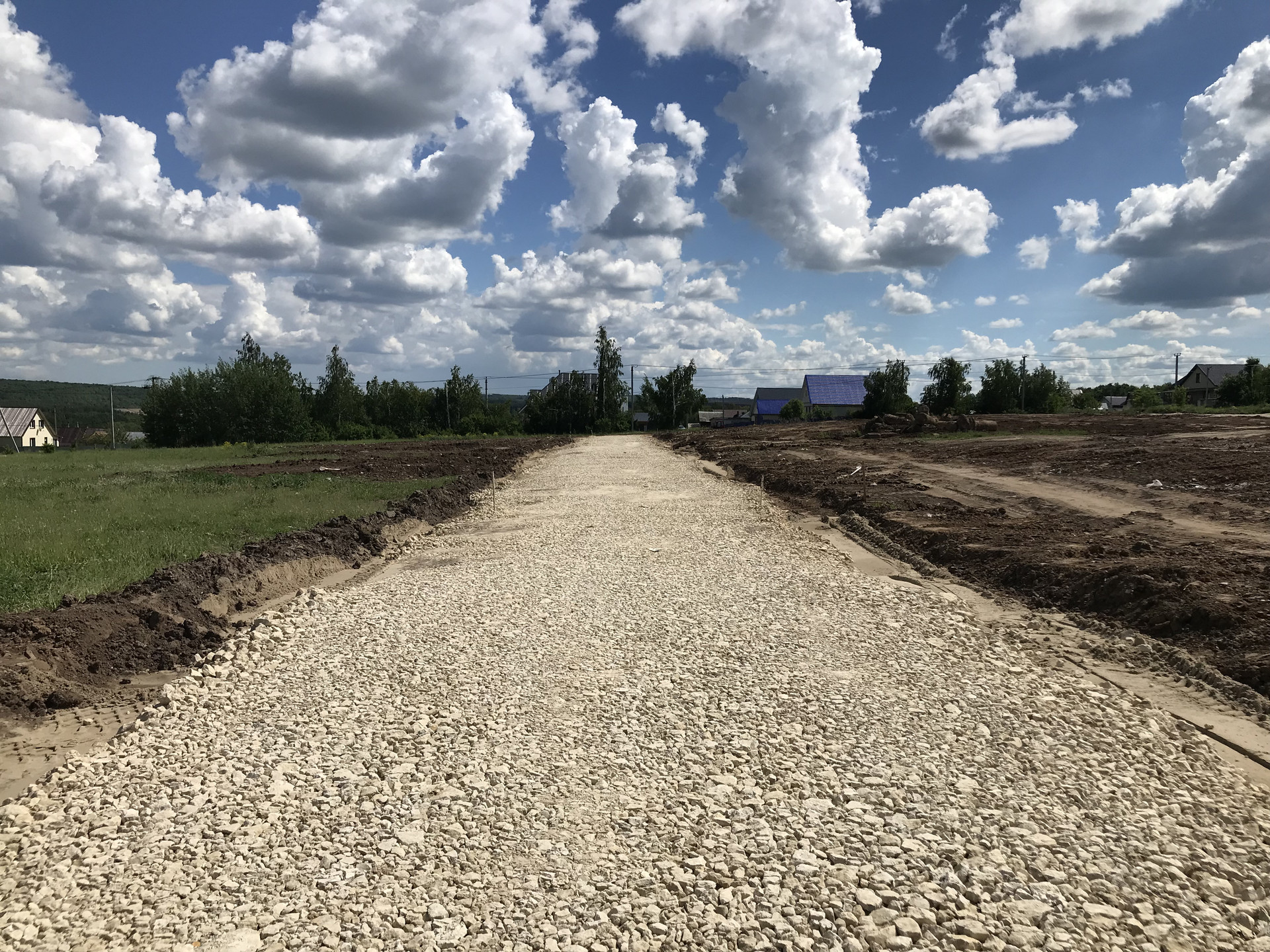 Подьездные пути асфальт, между участками дорога щебенка.