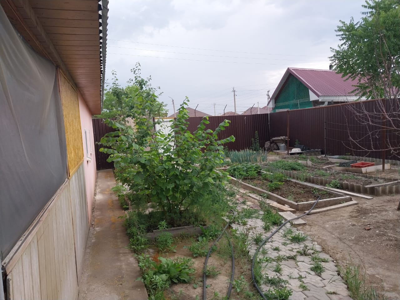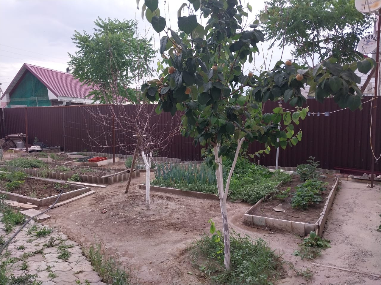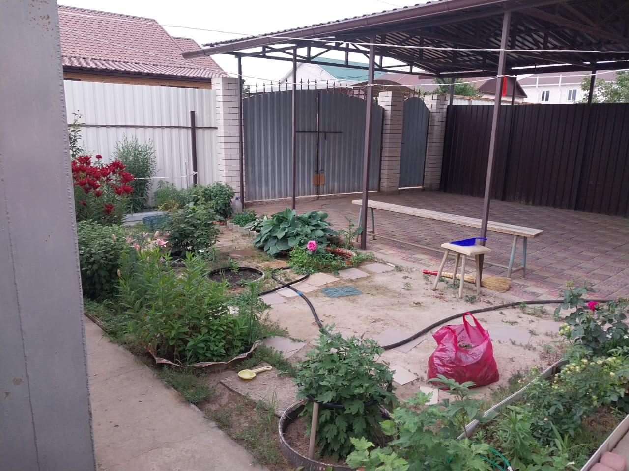 огород ухожен, на участке посажены цветы: розы, лилии, гортензия.