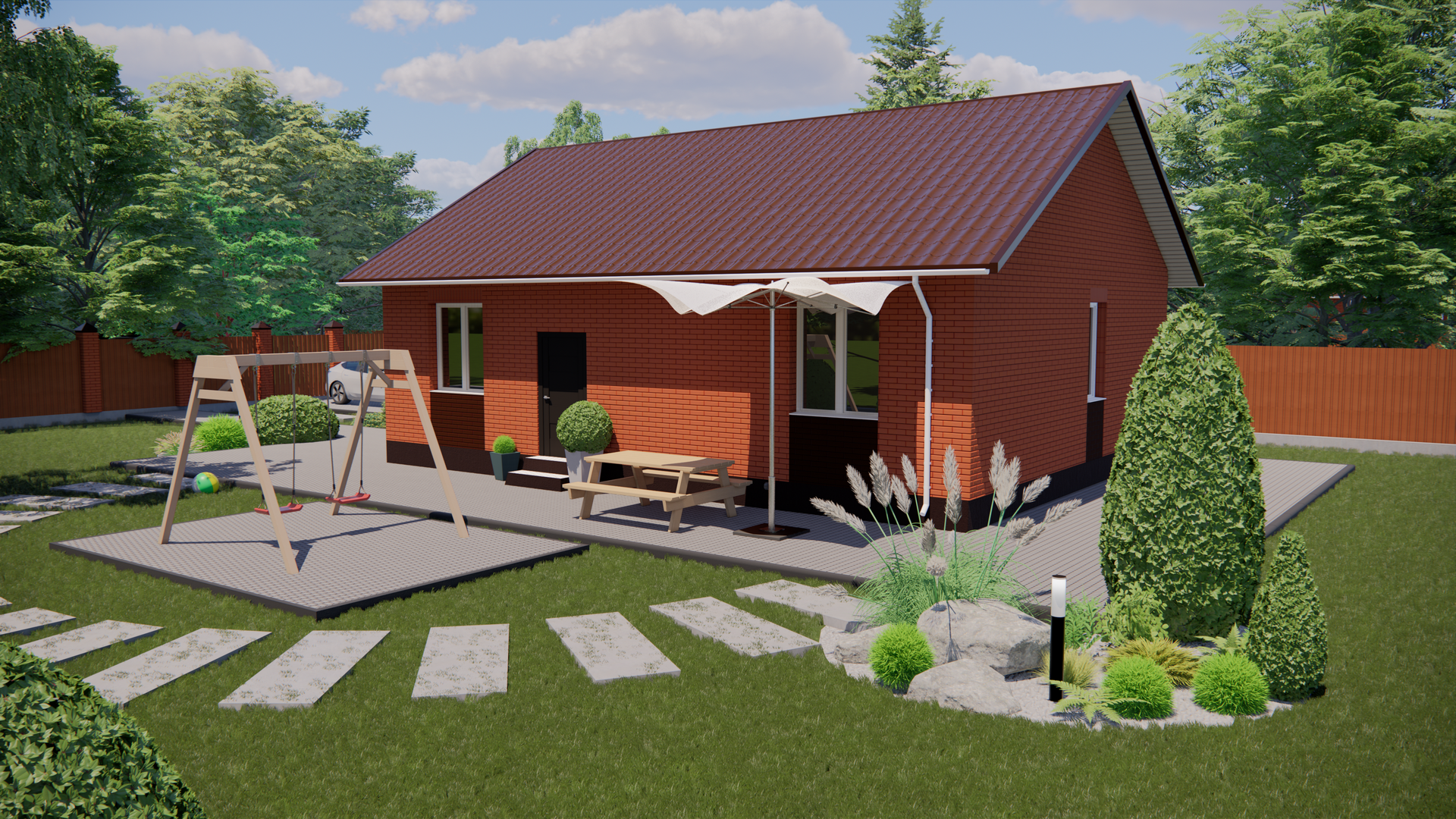 4.    Отмостка по периметру. Бетонная дорожка от калитки до крыльца.