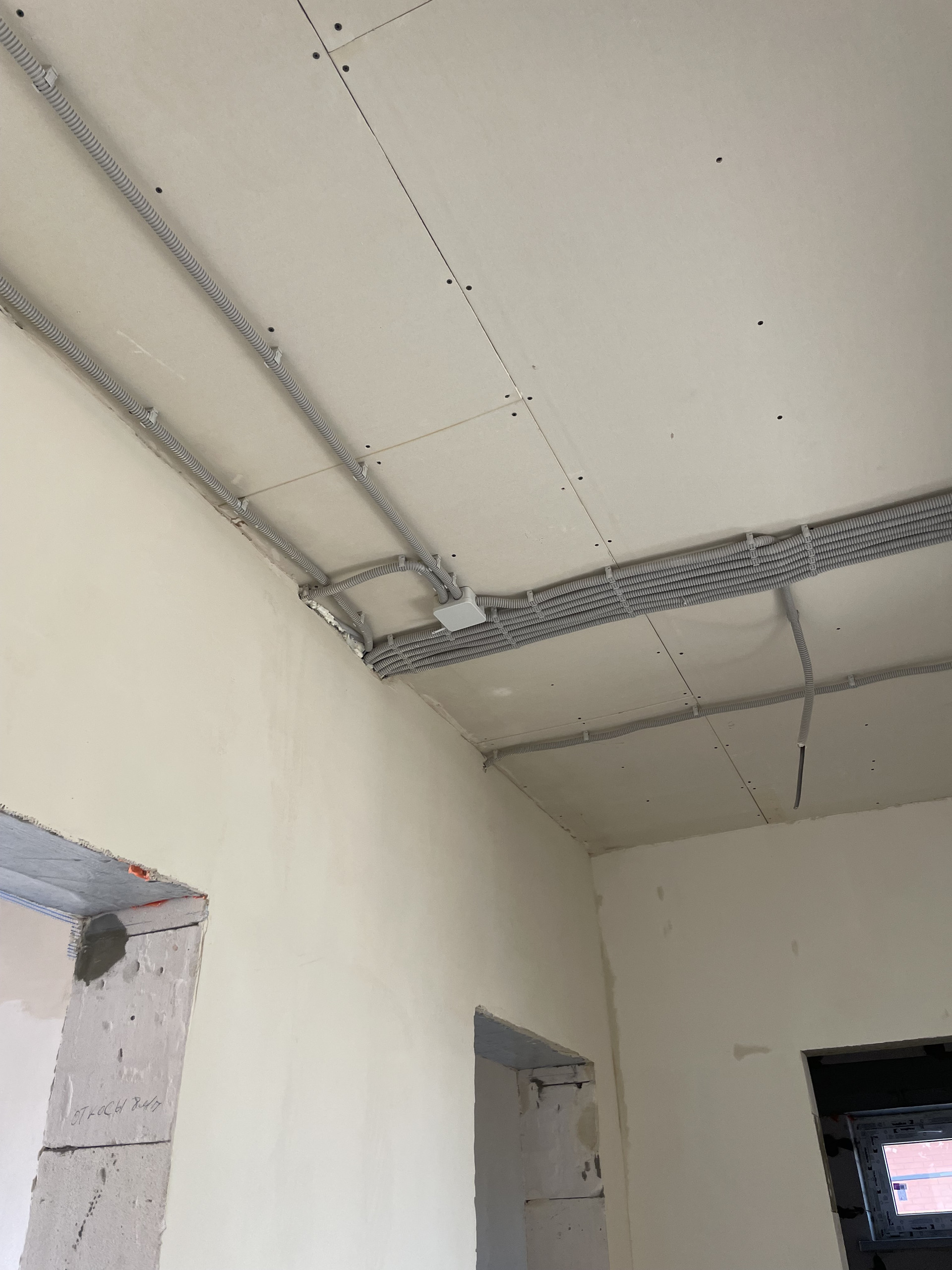 24.     Отделка предчистовая под обои, потолок зашит ГКЛ (потолок натяжной за доп. плату, штукатурка санузла за доп. плату.)