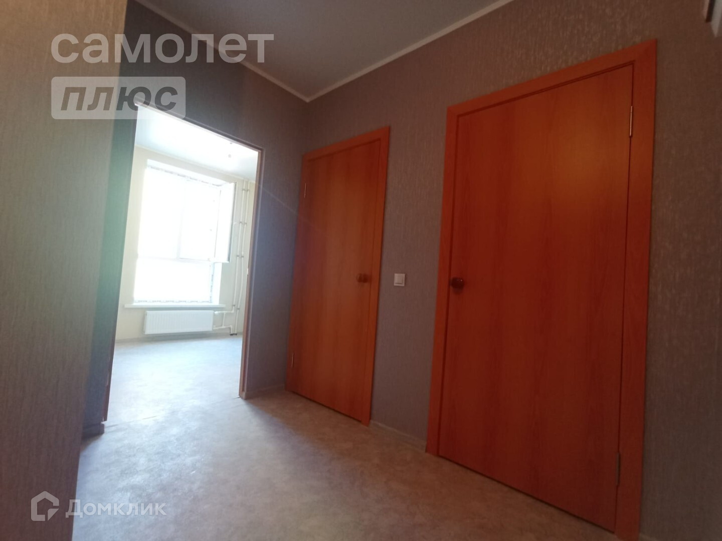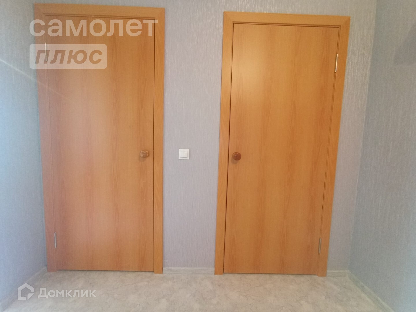 — поклеены современные обои, на полу линолеум,