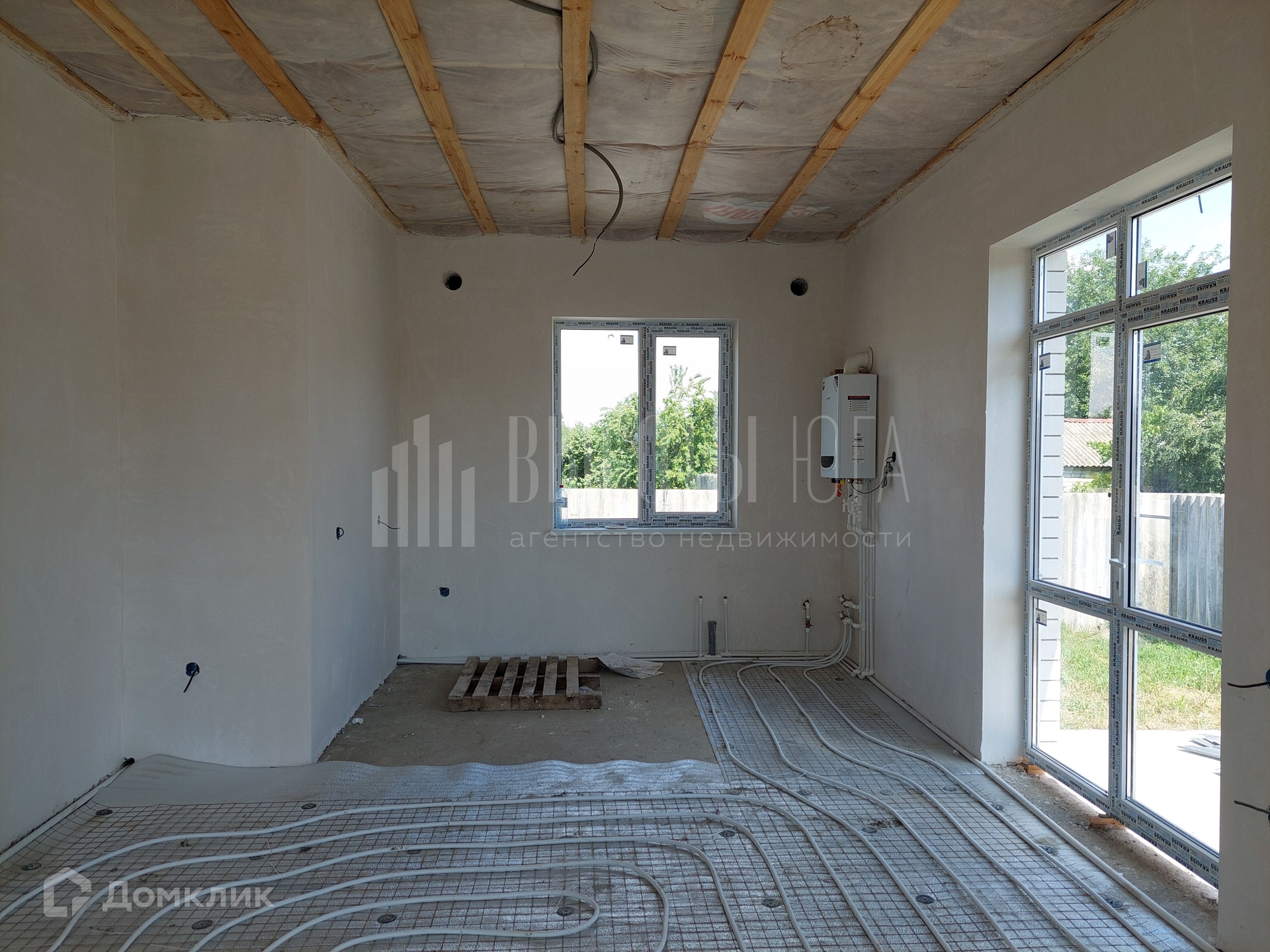 Продается новый дом и земельный участок. В доме сделано:  Индивидуальное отопление.  Пластиковые окна.  Теплый пол.  Предчистовая отделка.  На полу будет сделана стяжка.  Потолок подошьют гипсокартоном.  Дом утеплен по стенам и потолку.  Два входа.   Подходит любой вид расчета.   Звоните! Отвечу на все вопросы.