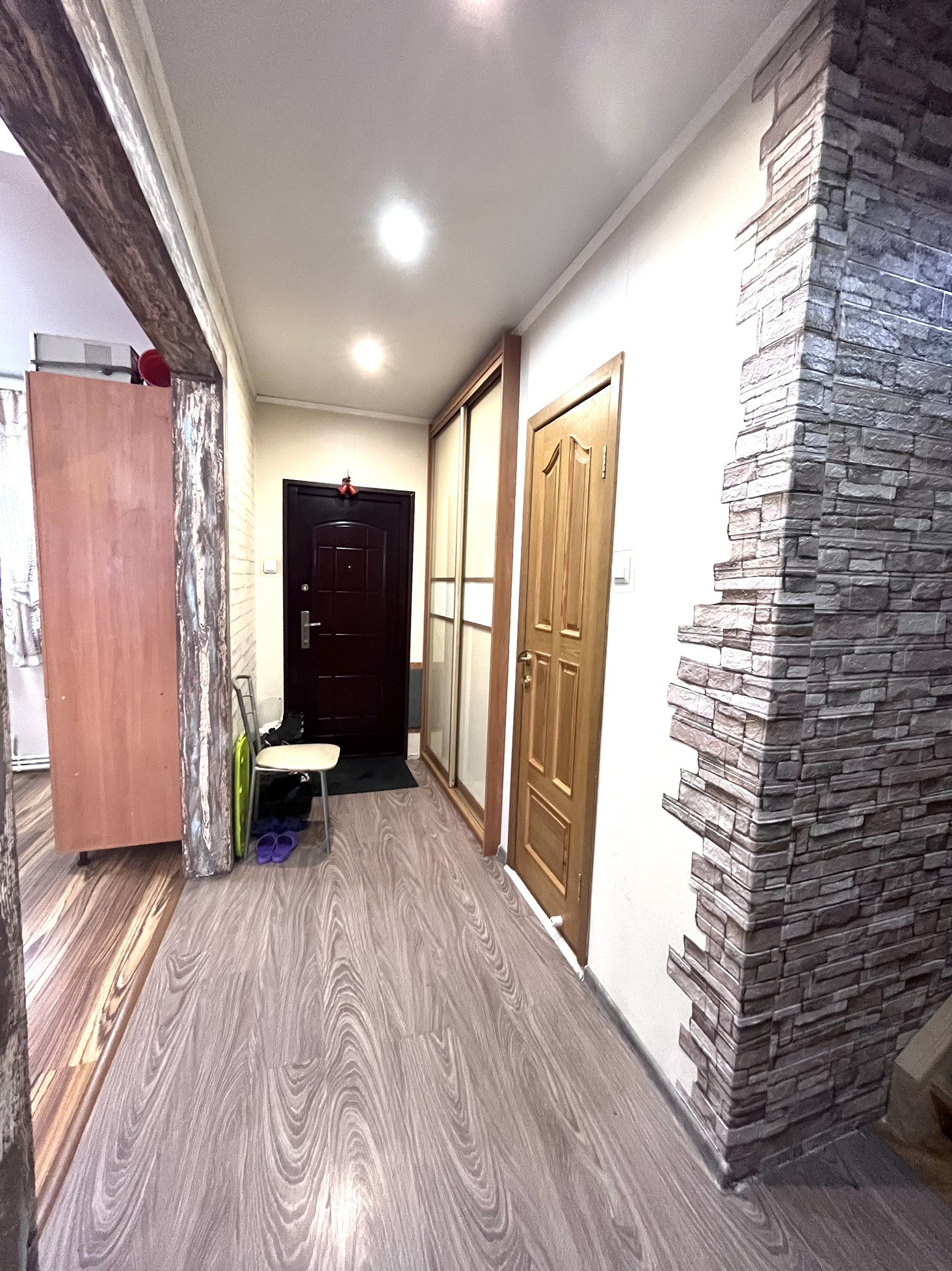 - На полу ламинат, частично на кухне и в коридоре кафель