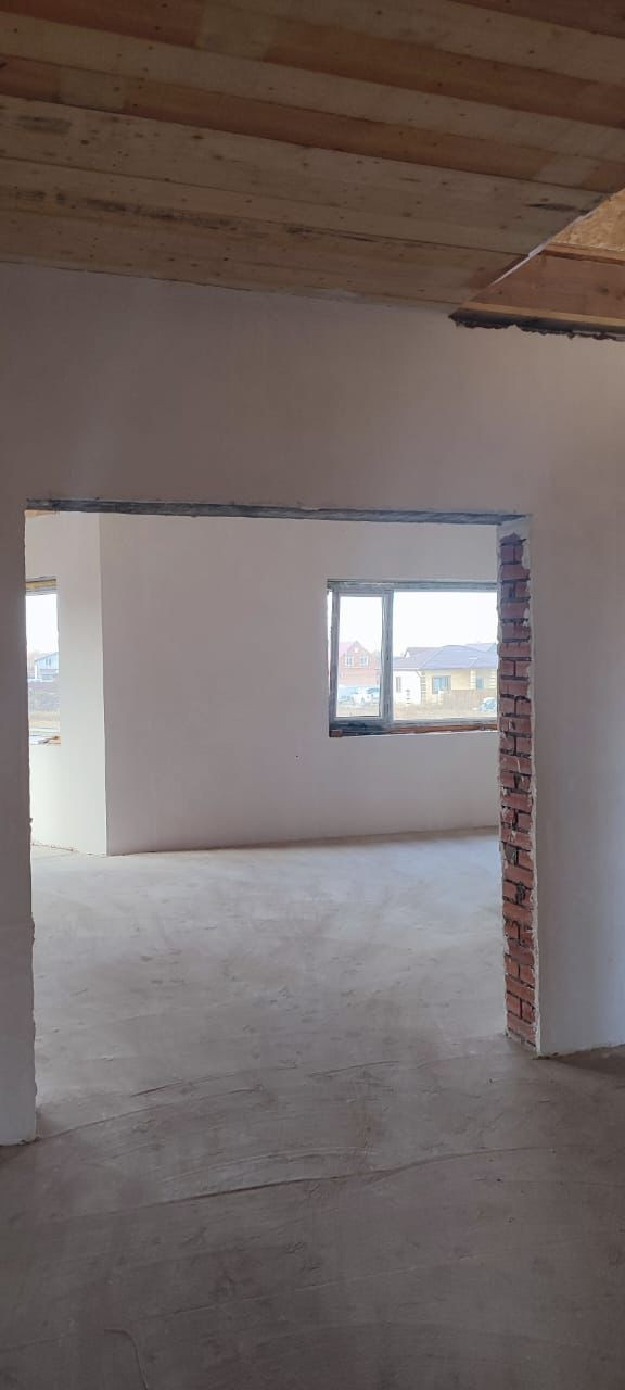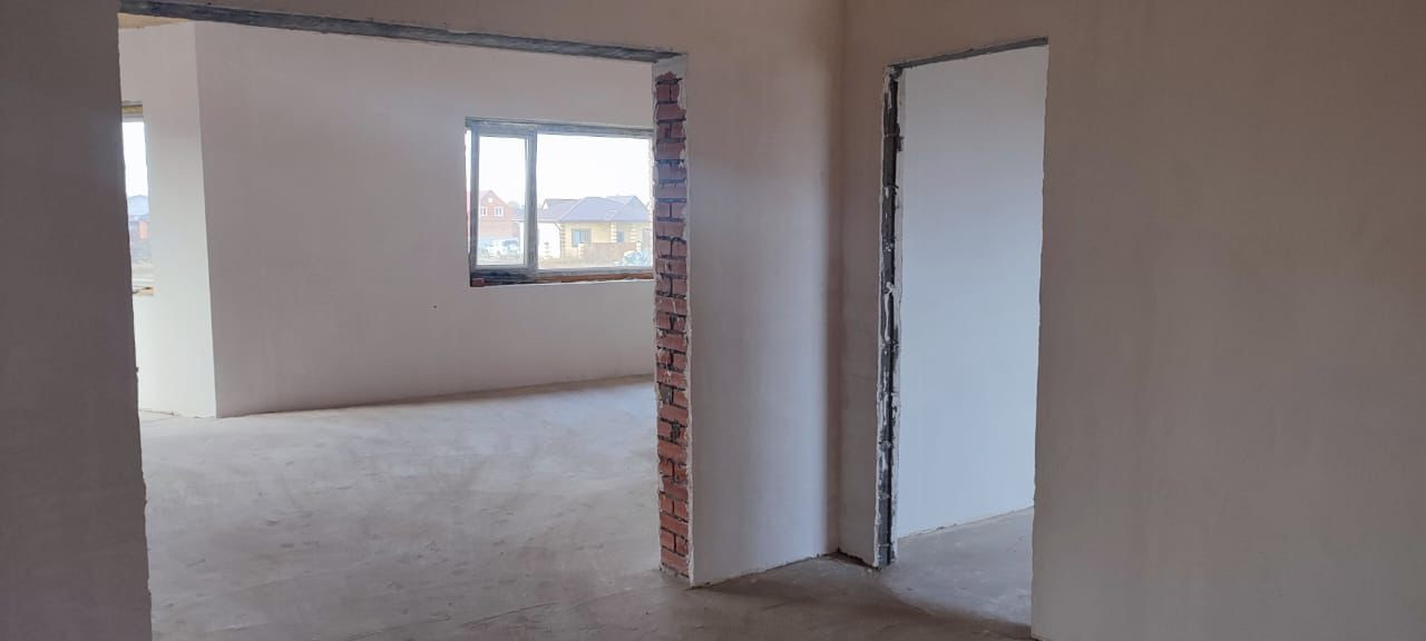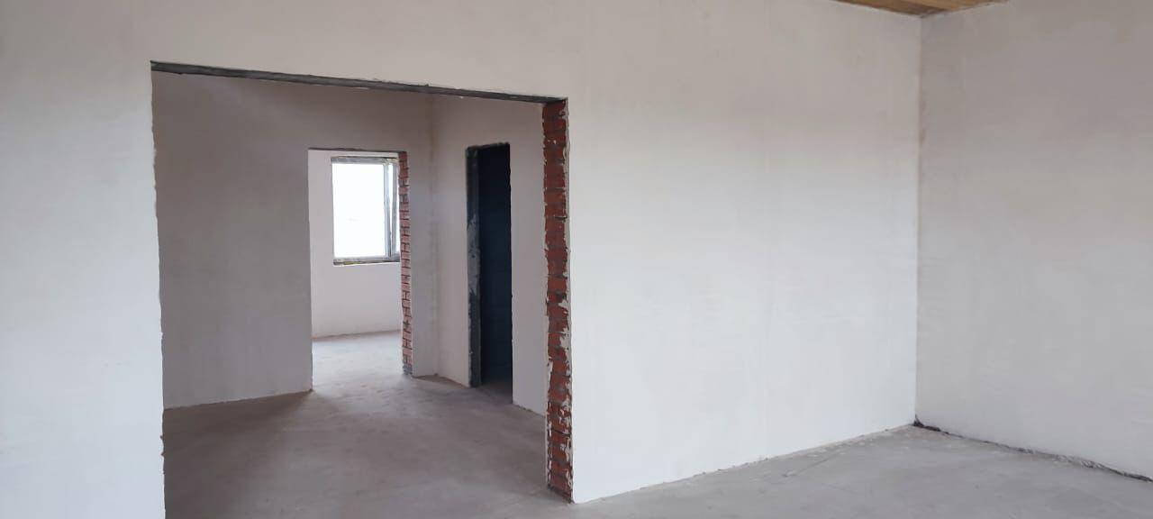 Предчистовая отделка, стены выровнены по маяк, теплый пол. Заведена вода(центральное водоснабжение).