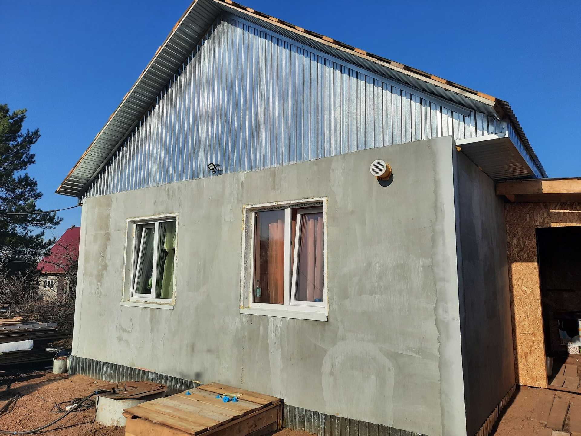 дом 2022 года постройки ,материал стен газобетонный блок плюс утеплитель пенопласт ,очень тёплый. проведены и подключены все коммуникации, отопление тёплый пол ,вода и канализация в доме .внутри сделан ремонт .дом продаю с мебелью. на участке также имеется хоз блок ,недострой бани 6 на 6.строил для себя причина продажи переезд в другой город. Дом находится в с.Нагаево снтУтес
