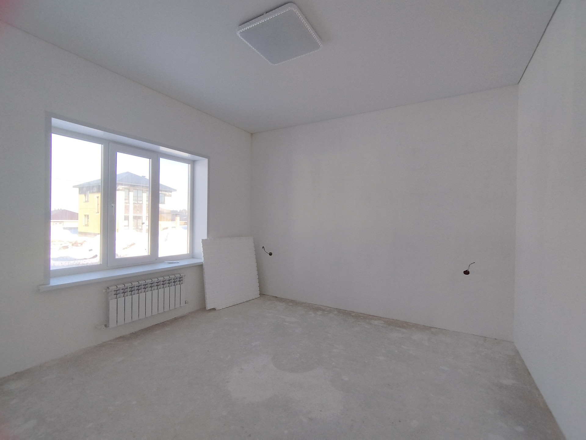 На 6 сотках земли дом имеет площадь 140 кв.м. На первом этаже просторная кухня-гостиная с панорамными окнами, комната, санузел. На втором этаже хозяйская комната со своей гардеробной, две спальни и санузел.