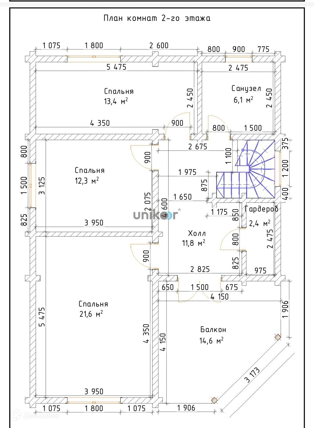 Второй этаж 3 спальни, гардероб, второй санузел, гардероб, балкон 15 кв.м.