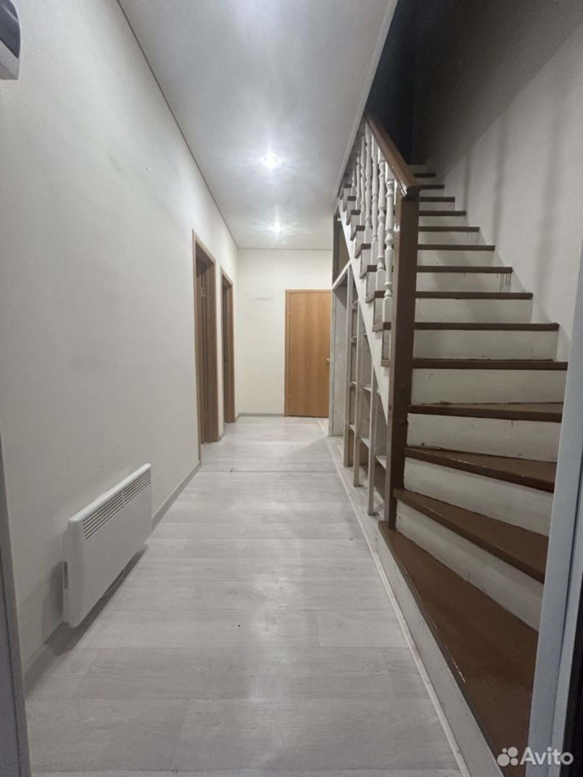 Продается дом 98кв.м, 2 этажа, 5 комнат и гардеробная, окна пластиковые, отопление электричество. Дом из бруса. Участок огорожен забором из профнастила, на участке залит фундамент под баню. На первом этаже кухня-гостиная, 2 спальни и санузел совмещенный. На втором этаже 2 спальни и гардеробная.  Вода в дом заведена и свой колодец, так же имеются 2 шамбо больших. 2 взрослых собственника, дом в ипотеке в сбере, возможно рассмотреть выкуп ипотеки под низкую ставку. Звоните все расскажу.