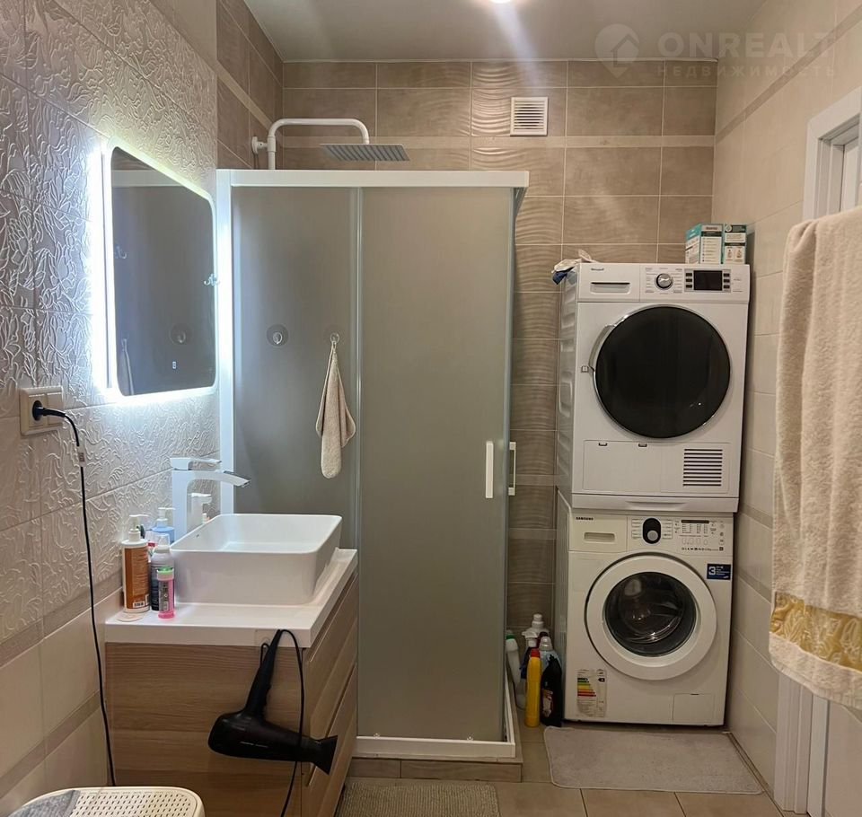 1 этаж - прихожая, сан.узел с душевой кабиной, постирочная, кухня - гостинная, гостевая спальня