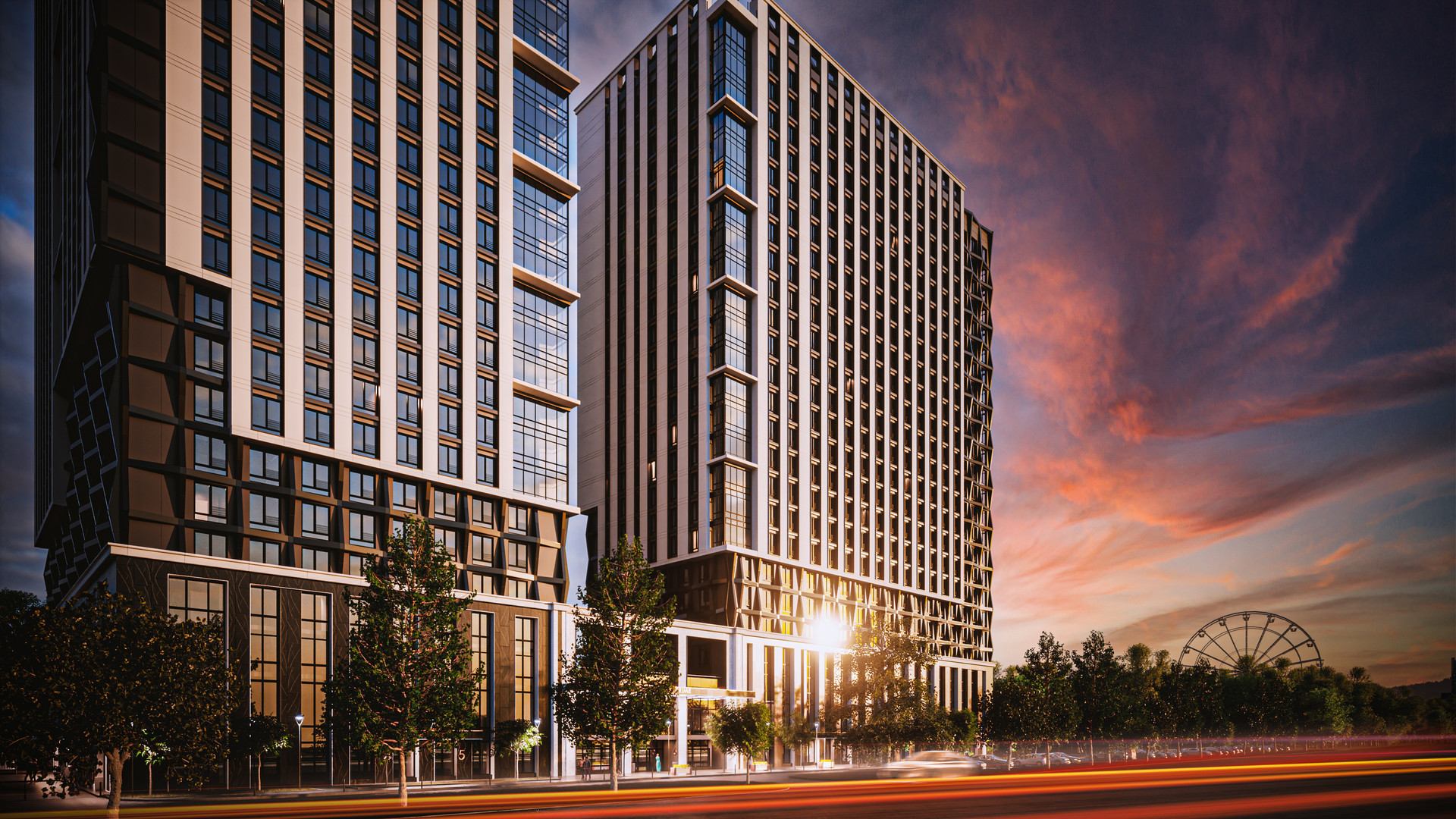 К жилому комплексу «ТНЕ РRIМЕ» прилегает благоустроенный парк площадью 8 га, а местоположение гарантирует потрясающие виды на всех 25 этажах.