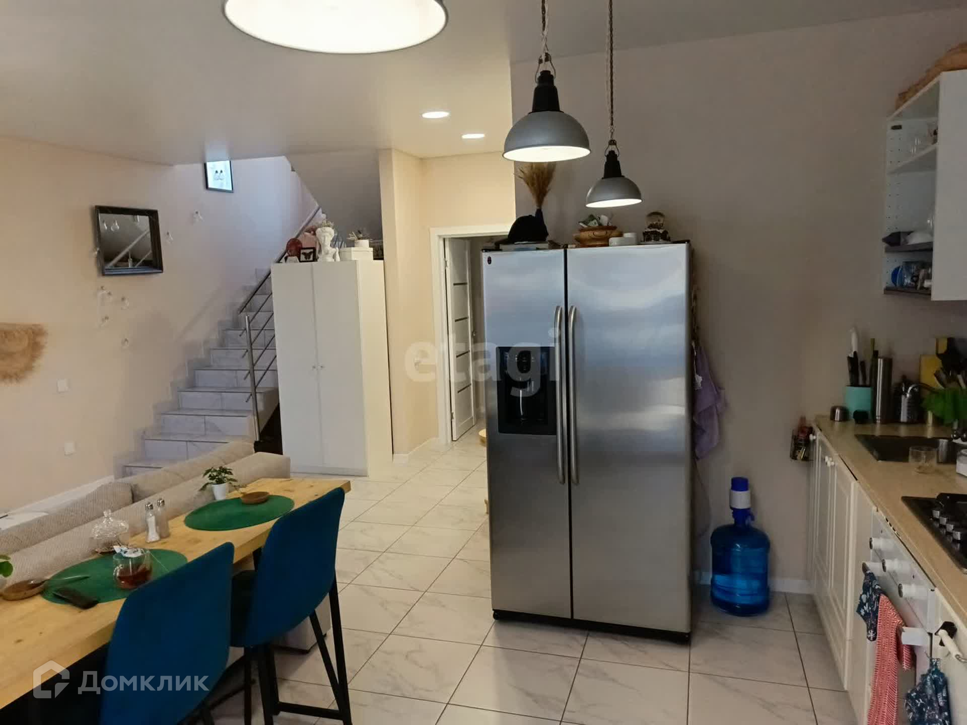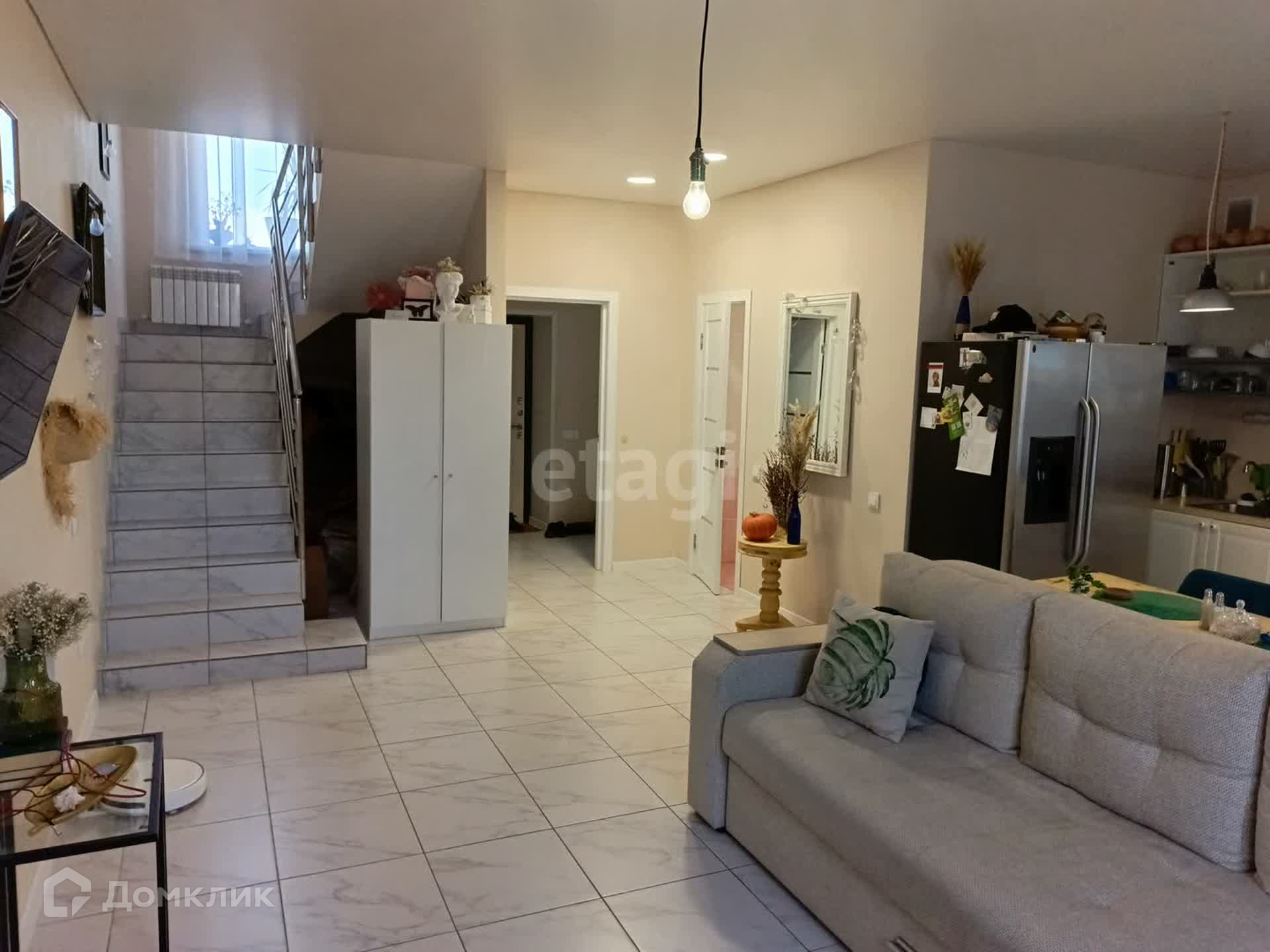 Новым жильцам остаётся кухонный гарнитур, диваны на обоих этажах.