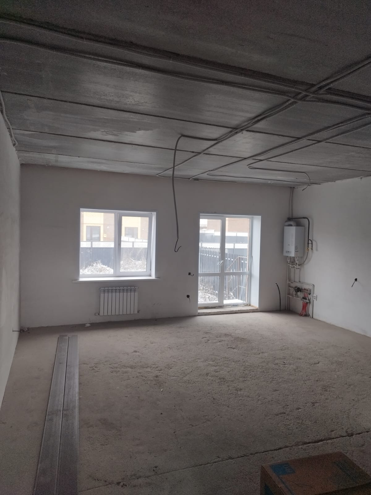 Отделка получистовая, ровные стены, разводка электричества по дому, газовый котел, теплый пол, отличная входная дверь с теплоразрывом, вентиляция.