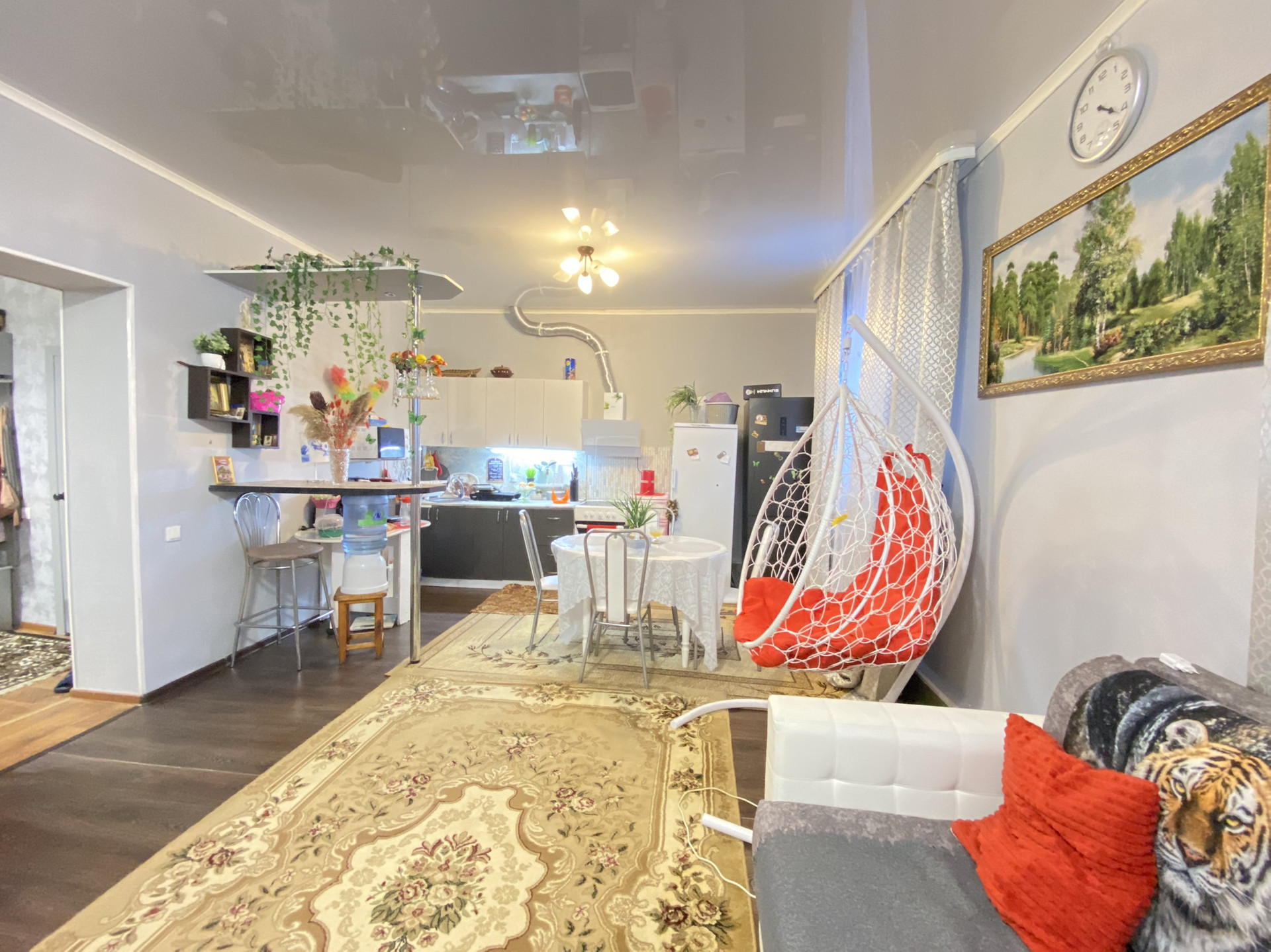В доме выполнен ремонт: на полу качественный ламинат, современные обои, натяжные потолки, установлены межкомнатные двери, функциональный кухонный гарнитур, 2 встроенных шкафа-купе.