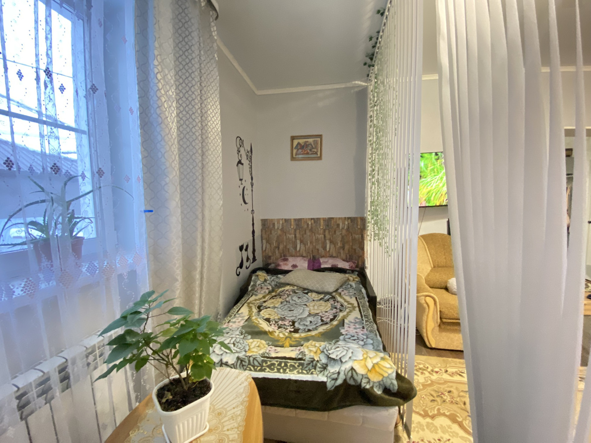 Планировка: кухня-гостиная, 1 спальная комната, в гостиной зонировано отдельное спальное место, санузел совмещенный, бойлерная. Отопление электрическое, водоснабжение: скважина, канализация- шамбо