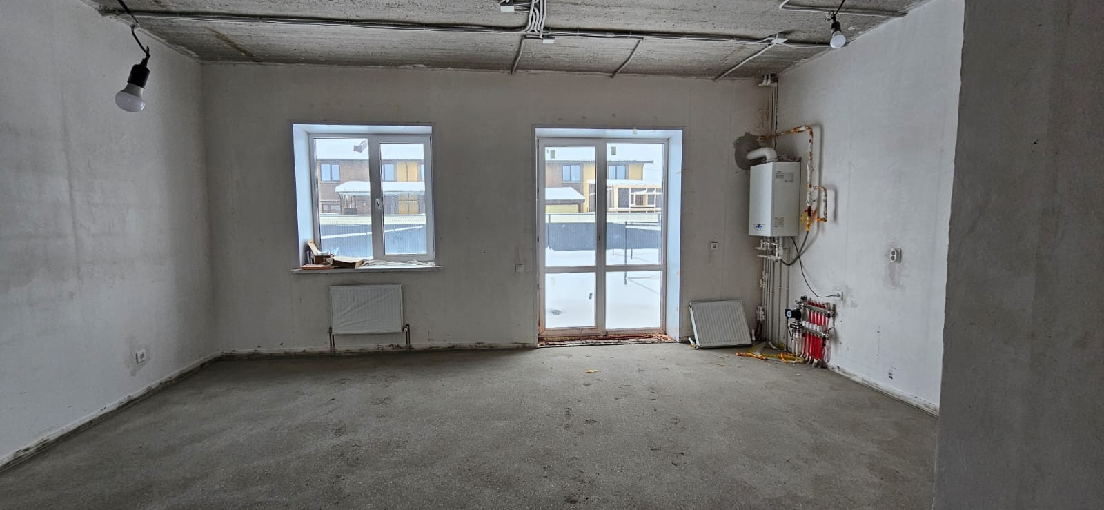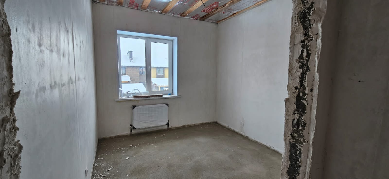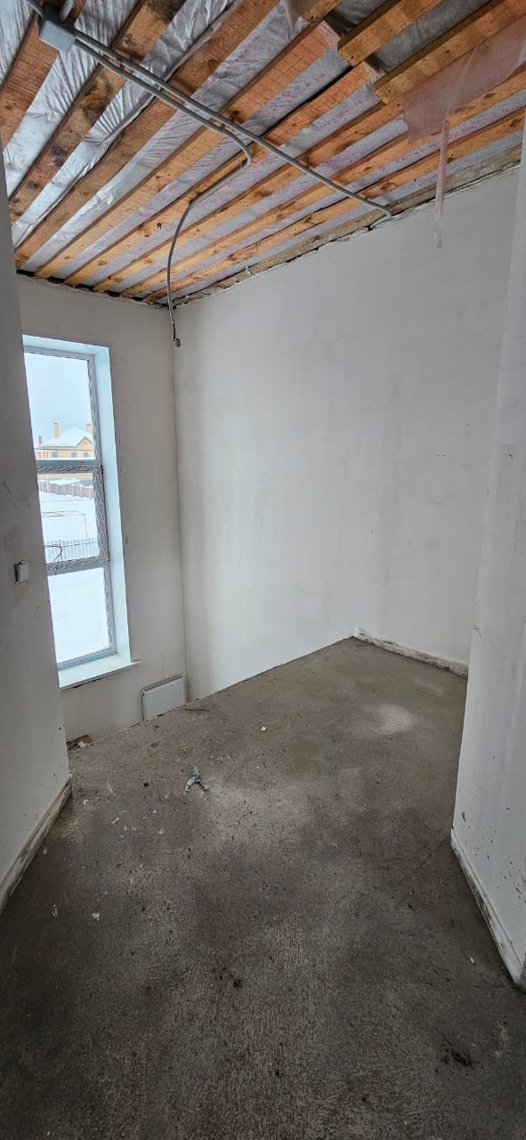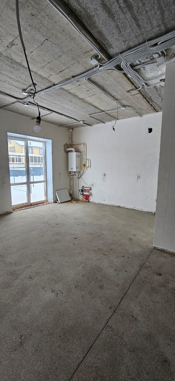 Качественная получистовая отделка, стены выровнены по маякам, теплый пол, полусухая стяжка, установлены радиаторы, котел.