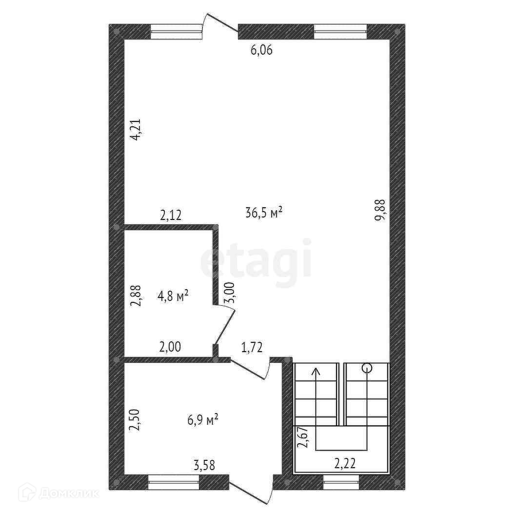 Просторная кухня-гостиная = 36,5 м² с выходом на территорию участка.