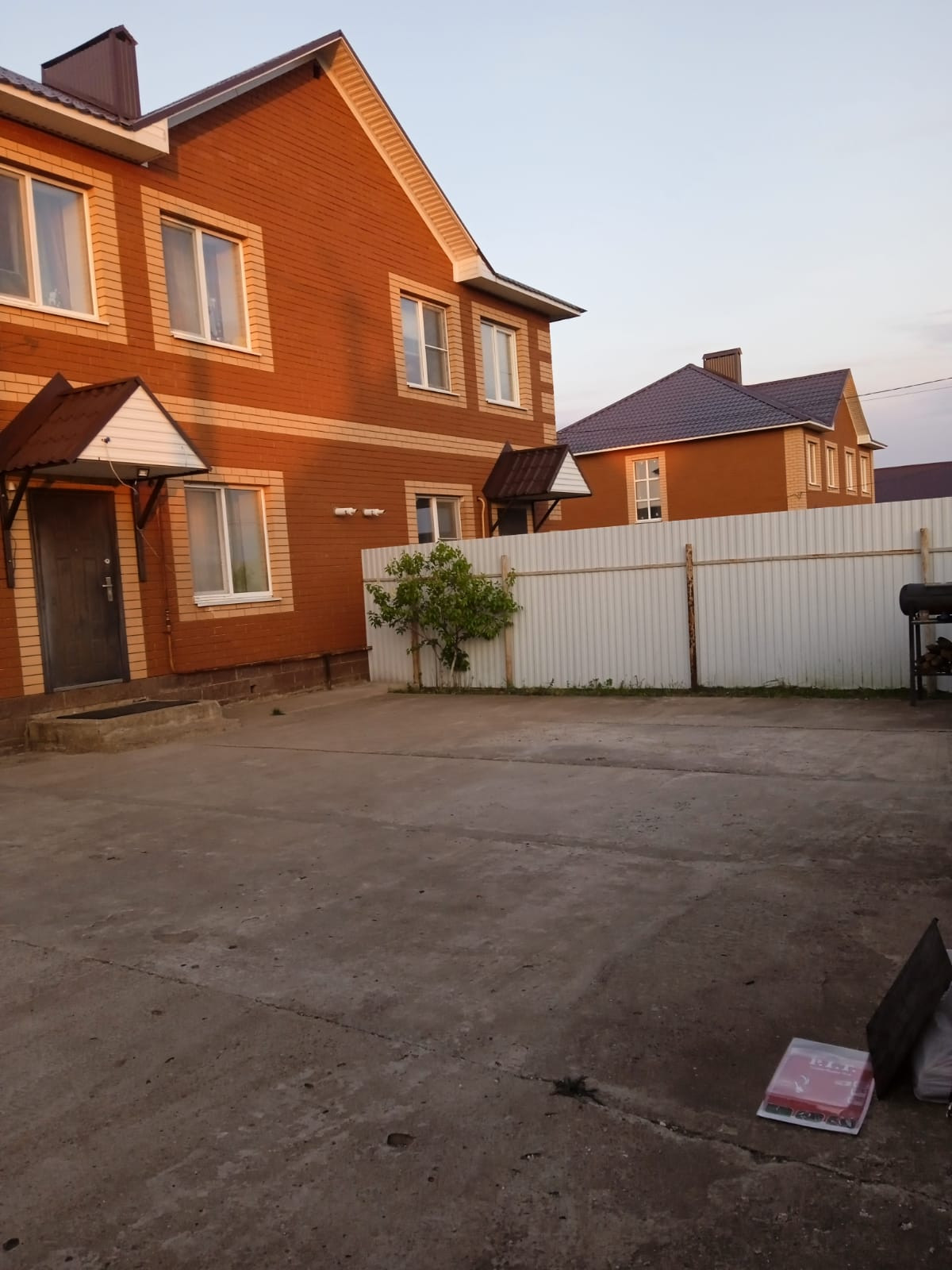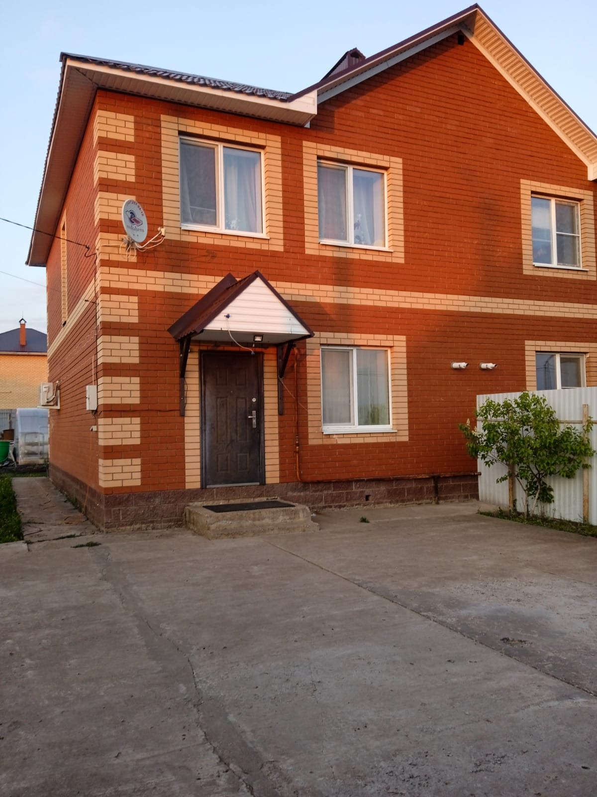 Продам таунхаус в Нагаево. Улица Гаты Сулейманова 5. Дом очень теплый, комфортный, обжитый, Красный кирпич. Дорога до дома круглый год в хорошем состоянии. Газ, свет, вода - все подведено. Евроремонт, натяжные потолки, люстры, точечные светильники, теплый пол на первом этаже, везде ламинат, лестница, 2 санузла полностью кафель, кондиционеры на каждом этаже. На первом этаже входной коридор, кухня, гостиная, санузел( туалет, стиралка, гладильная) два выхода во двор . На втором - две просторные спальни и санузел. Двор облагорожен, Забор из профнастила по периметру, ворота. Детский сад в 5-и минутах от дома на машине, школа в 10 минутах. Соседи живут. Дом и земля в собственности.  Просмотр в любой день.