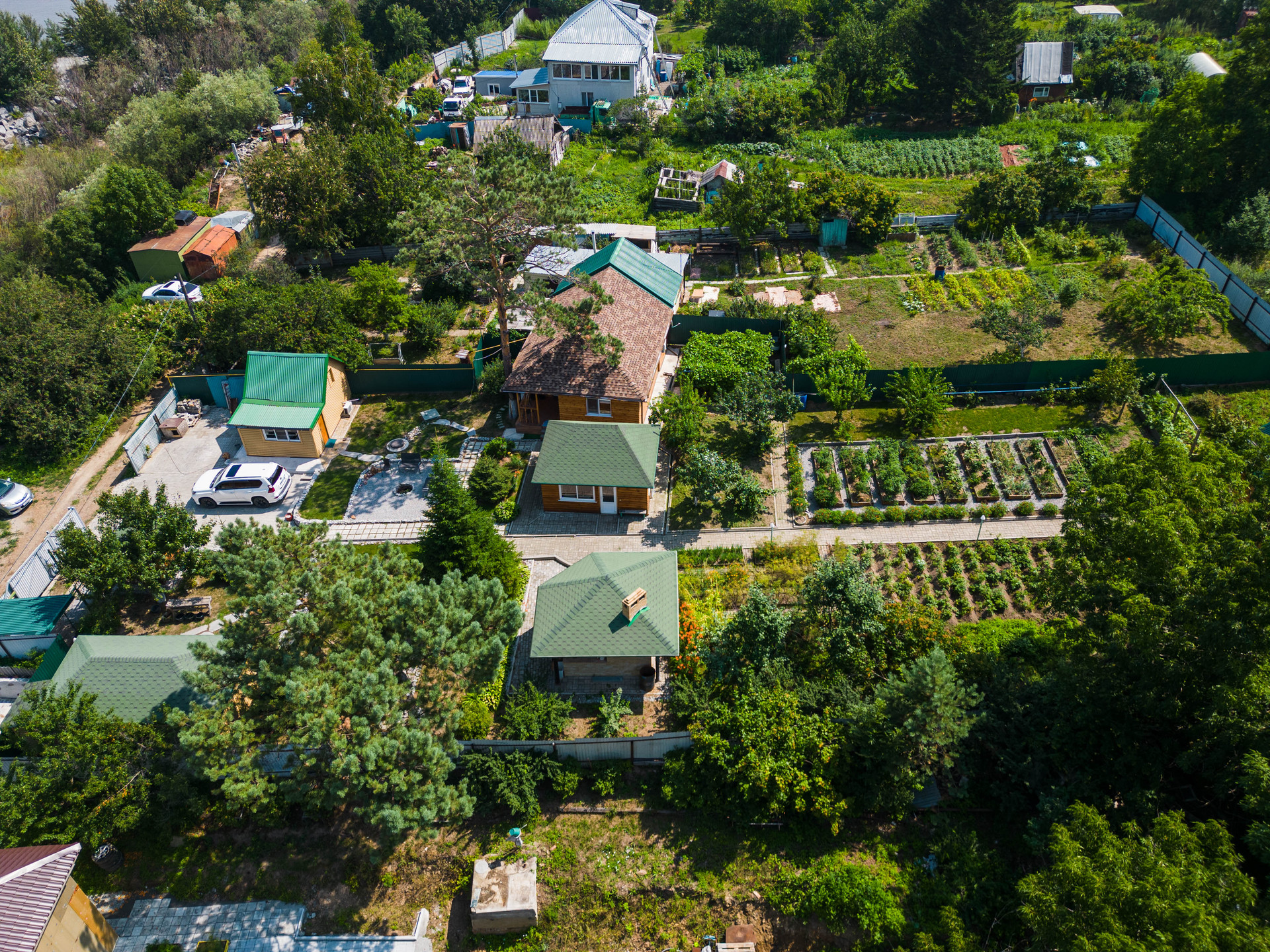 участок огорожен забором, ворота для авто; ровный сухой, облагороженный: плодовые насаждения, разбиты клумбы, обустроена зона барбекю, баня, хоз постройки, дорожки.