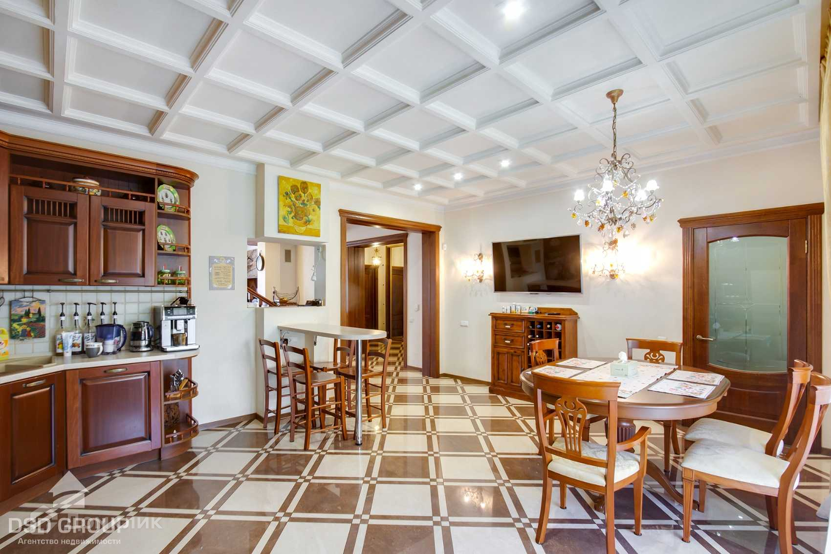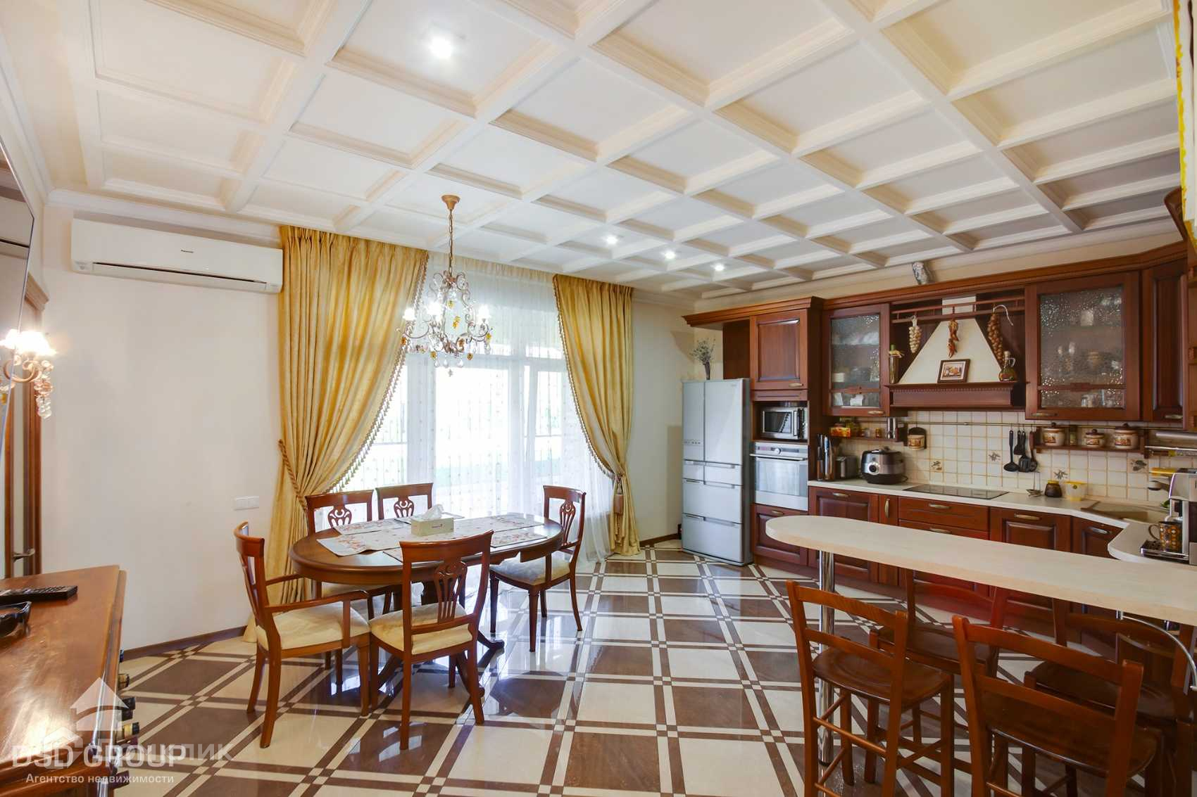 - просторная полностью оборудованная техникой кухня-столовая с винным шкафом и выходом на задний двор.