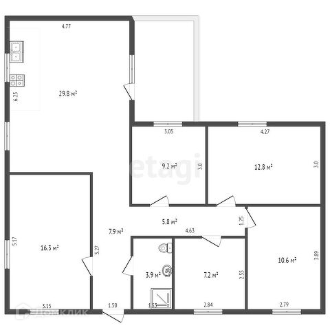 зал - 29,8 кв.м