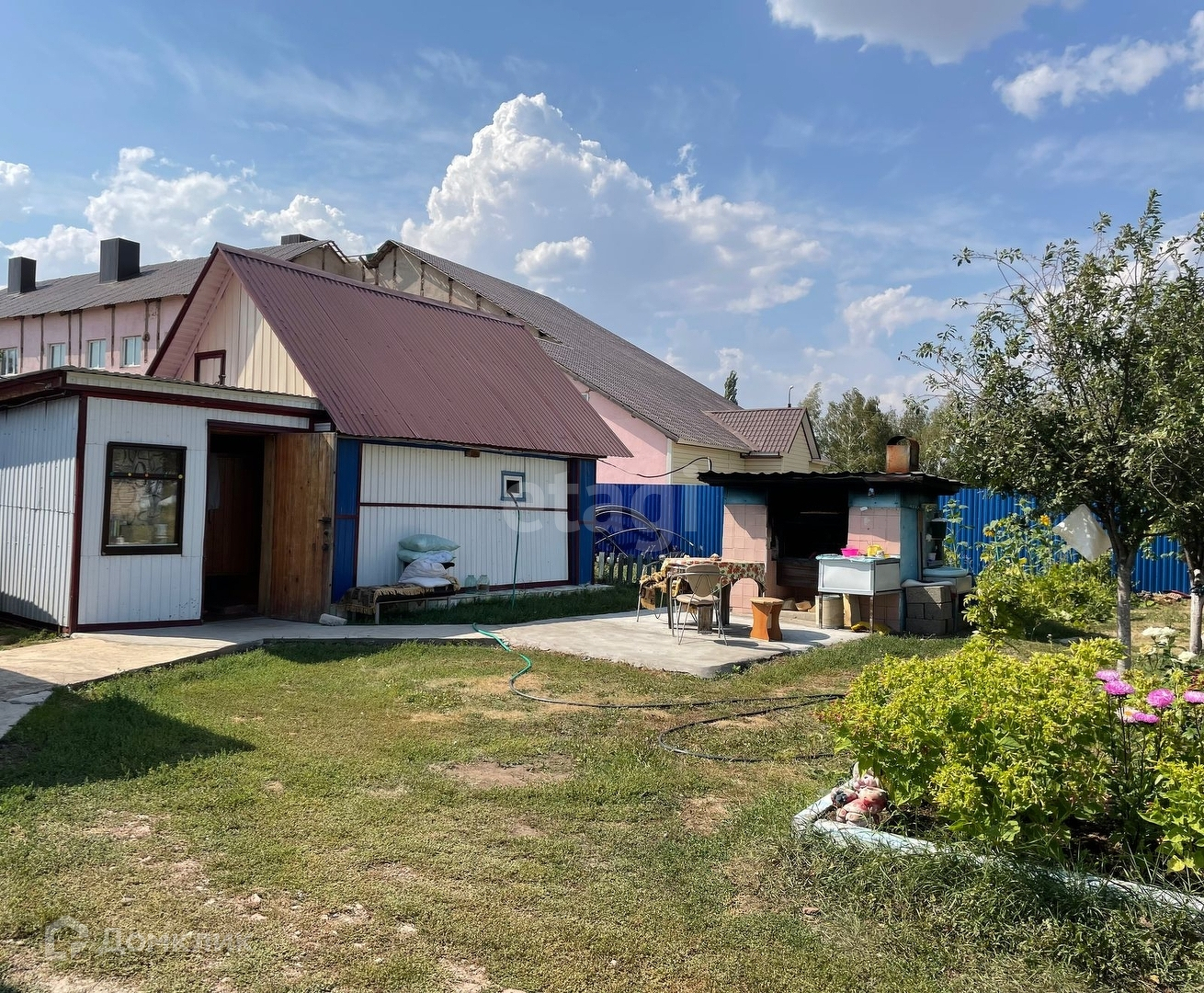 большая летняя веранда, баня с предбанником, капитальный сарай из кирпича, забор из профнастила