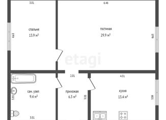Общая площадь: 72.9 м2