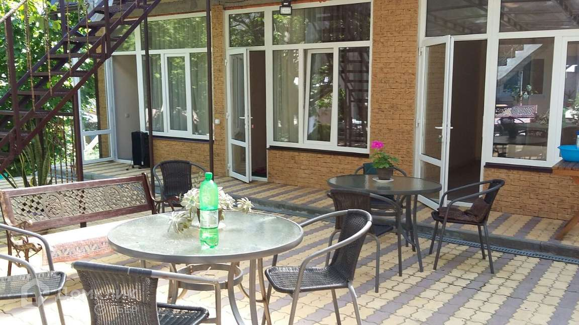 Во дворе отдельно стоящий, двухэтажный домик. На первом этаже: три номера с ремонтом, полностью готовы к сдаче. В каждом номере есть телевизор, су, установлена сплит система. На втором этаже 2 номера, подведены все коммуникации, установлены МП окна. Большой навес, где располагается лентяя кухня. Двор оформлен цветной брусчаткой, клумбами, хорошо озеленен. Зу 6,3 соток в собственности, полностью огорожен, есть заезд. До моря 15-20 минут ходьбы.