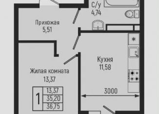 Однокомнатная квартира на продажу, 35 м2
