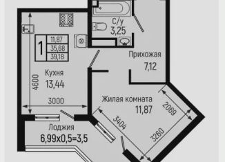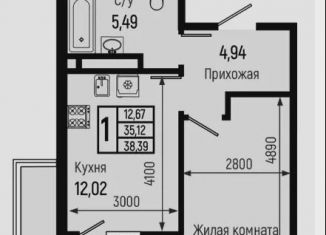 1-комнатная квартира на продажу, 39.2 м2