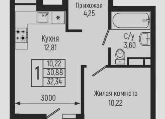 Однокомнатная квартира на продажу, 32.3 м2