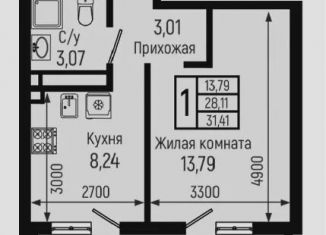 Однокомнатная квартира на продажу, 31.4 м2