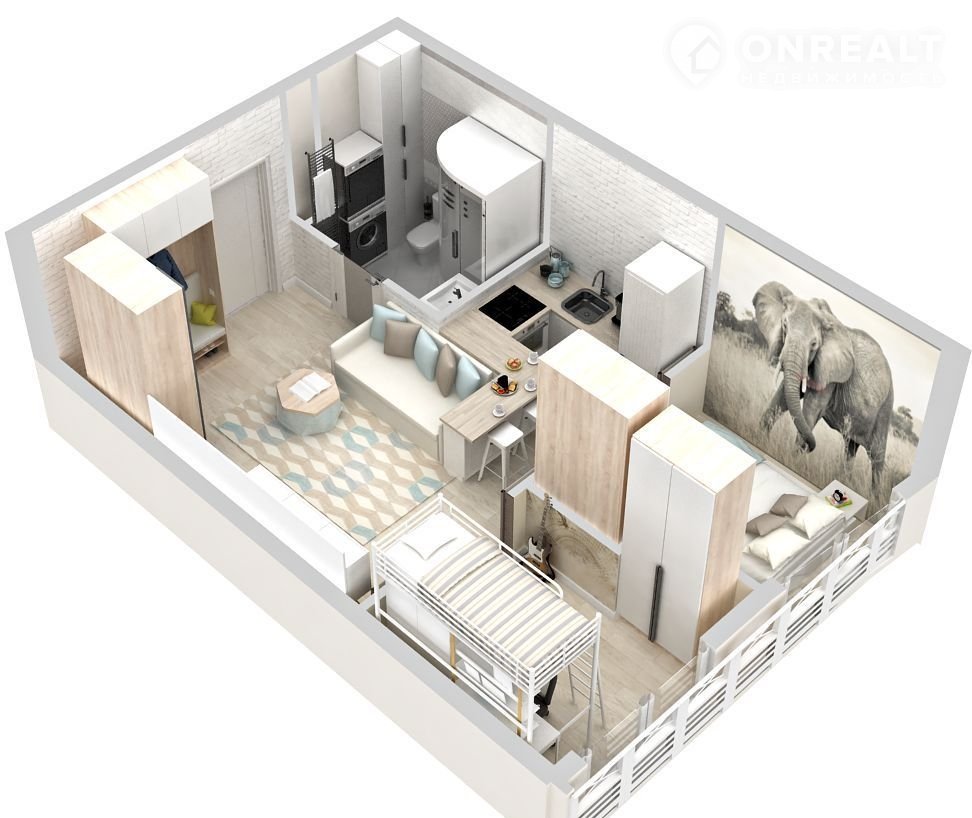 Общая площадь 33.6 м2