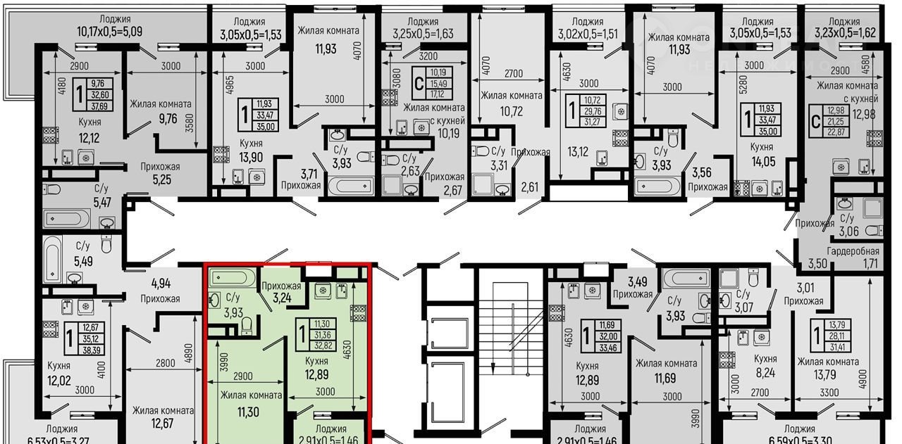 1-комнатная квартира, 32.8 м2, этаж 10 / 18, на продажу в селе Небуг