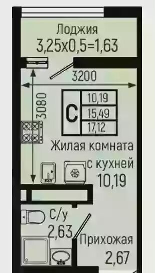 Общая площадь 17.1 м2