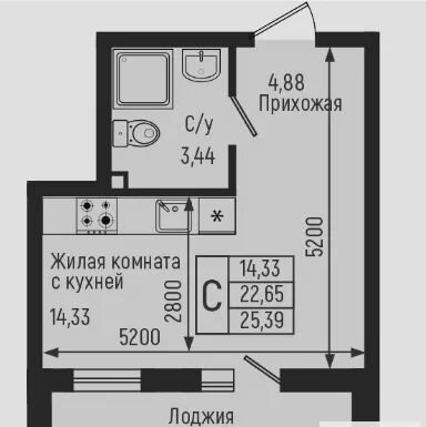 Общая площадь 25.4 м2