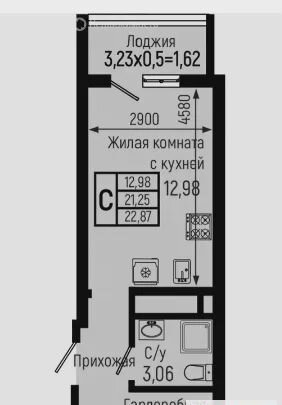 Общая площадь 22.9 м2