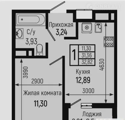 Общая площадь 32.8 м2