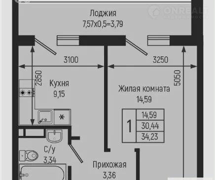 Общая площадь 34.2 м2