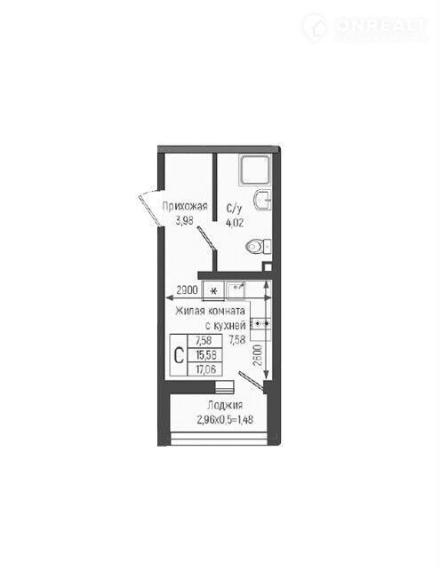Общая площадь 17.1 м2