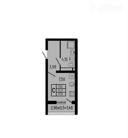 Общая площадь 17.2 м2