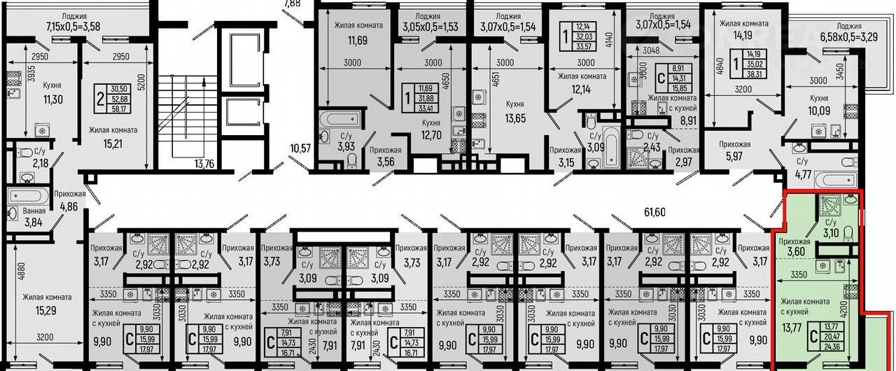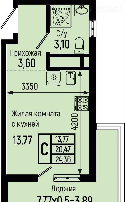 Общая площадь 24.4 м2