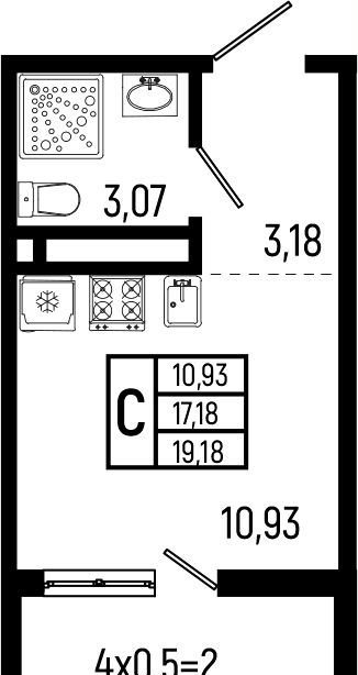 Общая площадь 17.2 м2