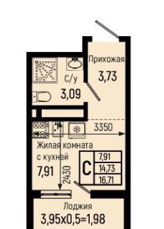 Общая площадь 16.7 м2