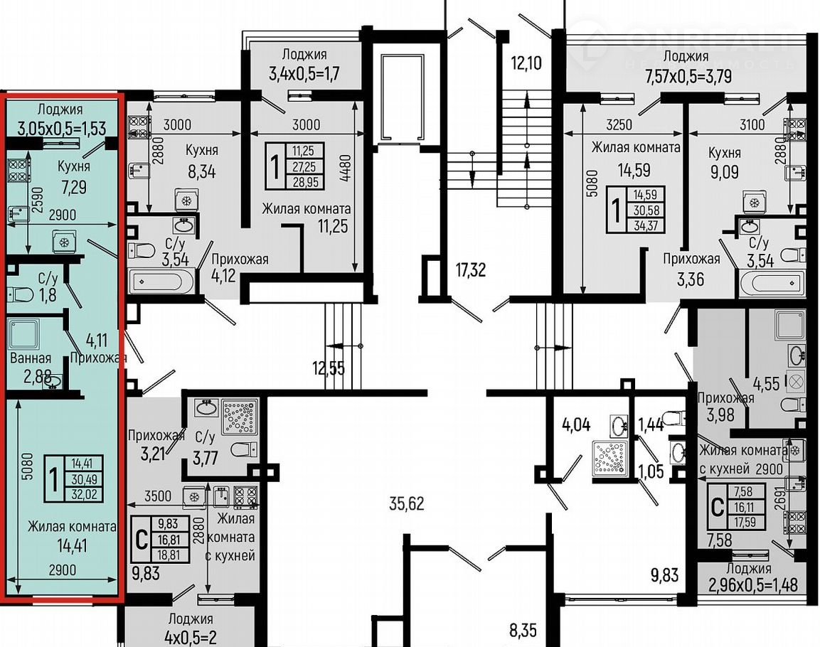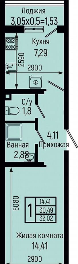 Общая площадь 32 м2