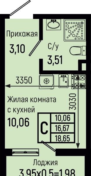 Общая площадь 18.7 м2