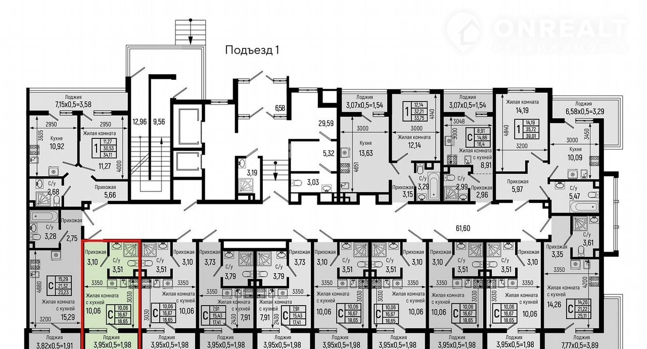 Квартира студия, 18.7 м2, этаж 1 / 18, на продажу в селе Небуг