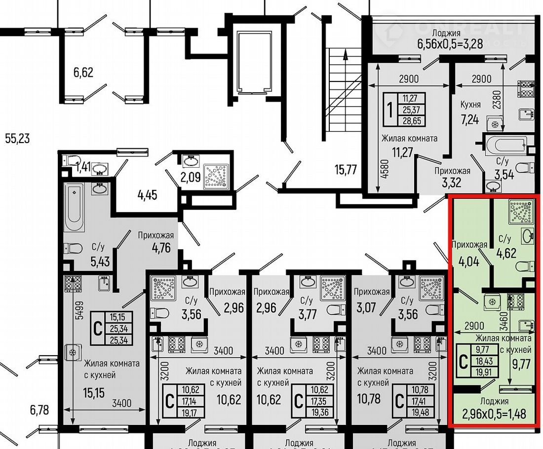 Квартира студия, 19.9 м2, этаж 1 / 9, на продажу в селе Небуг